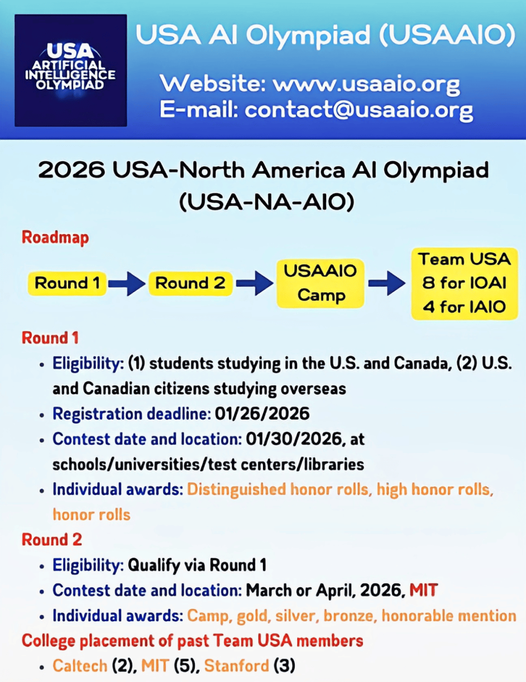 USAAIO(美国-人工智能奥林匹克竞赛)是由美国非营利教育组织从办,③ 需控制Python编程、线性代数、概率论及机械进修根本(如监视/无监视进修概念)